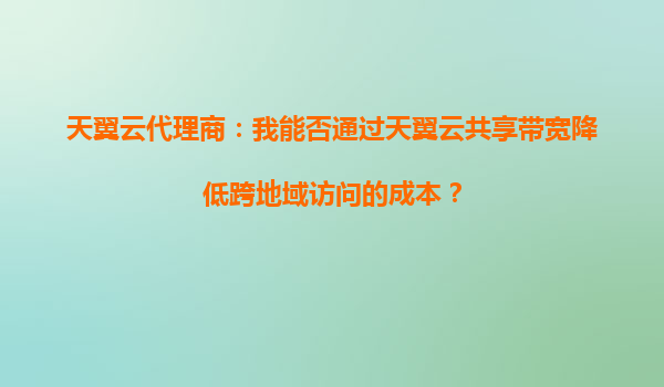 2025-10-03天翼云代理商:我能否通過天翼云共享帶寬降低跨地域訪問的成本? 一、天翼云共享帶寬的核心優(yōu)勢 天翼云作為中國電信旗下的云計算服務(wù)品牌,其共享帶寬服務(wù)通過資源池化技術(shù),將多用戶帶寬需求整合到統(tǒng)一物...
