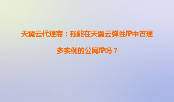 2025-09-21天翼云代理商:彈性IP多實例公網IP管理詳解 一、天翼云彈性IP的核心優勢 作為中國電信旗下云計算服務品牌,天翼云憑借電信級網絡基礎設施和多年政企服務經驗,在彈性IP管理領域具有顯著優勢: 1.運營商...