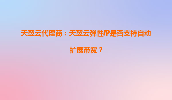 2025-09-21天翼云代理商解析:天翼云彈性IP的自動擴展帶寬能力與核心優勢 一、天翼云彈性IP產品概述 天翼云彈性IP(EIP)是面向云計算場景設計的動態公網IP服務,支持與云主機、NAT網關等資源靈活綁定,滿足企業...
