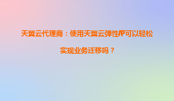 2025-09-18天翼云代理商:使用天翼云彈性IP可以輕松實(shí)現(xiàn)業(yè)務(wù)遷移嗎? 一、天翼云彈性IP的核心優(yōu)勢(shì) 天翼云彈性IP(ElasticIP)是一種可以動(dòng)態(tài)綁定到云服務(wù)器實(shí)例的公網(wǎng)IP資源,具有以下核心優(yōu)勢(shì): 靈活...