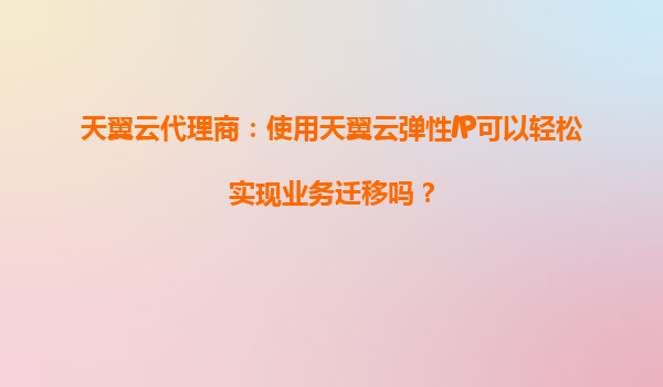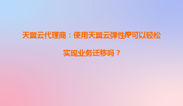 天翼云代理商:使用天翼云彈性IP可以輕松實現業務遷移嗎? 一、天翼云彈性IP的核心優勢 天翼云彈性IP(ElasticIP)是一種可以動態綁定到云服務器實例的公網IP資源,具有以下核心優勢: 靈活...