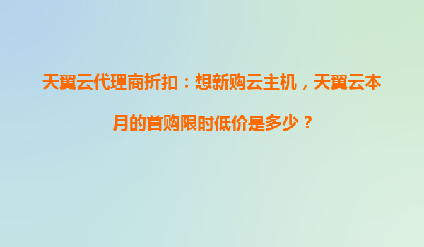 天翼云代理商折扣:新購云主機首購限時低價解析與優勢詳解