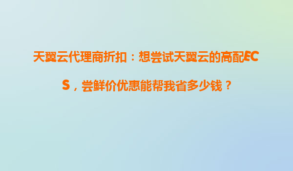 天翼云代理商折扣:高配ecs嘗鮮價究竟能省多少錢?