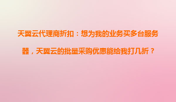 天翼云代理商折扣解析:如何通過批量采購獲取最優(yōu)服務器價格