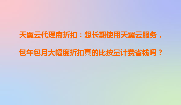 天翼云代理商折扣:包年包月與按量計費的成本效益分析