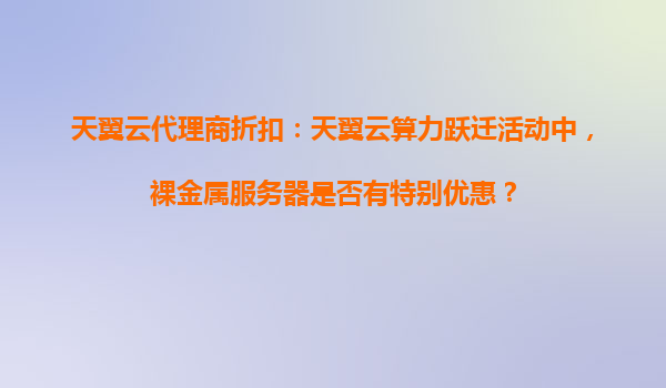 天翼云算力躍遷活動(dòng):裸金屬服務(wù)器特別優(yōu)惠解析