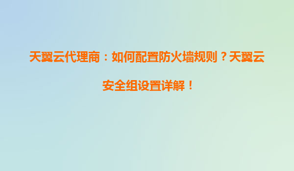 天翼云代理商:如何配置防火墻規(guī)則?天翼云安全組設(shè)置詳解