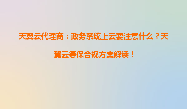 天翼云代理商:政務(wù)系統(tǒng)上云注意事項(xiàng)與等保合規(guī)方案解讀