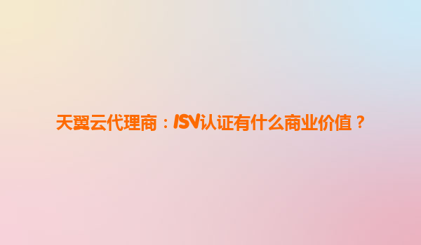 天翼云代理商ISv認(rèn)證的商業(yè)價值與天翼云的核心優(yōu)勢