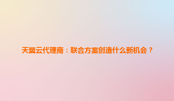 天翼云代理商:聯(lián)合方案創(chuàng)造什么新機(jī)會(huì)?