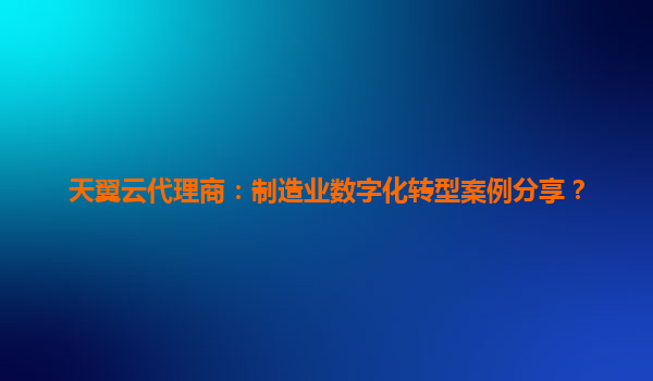 天翼云代理商助力制造業(yè)數(shù)字化轉(zhuǎn)型:案例與價值解析