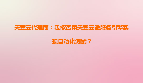 天翼云代理商指南:如何通過天翼云微服務(wù)引擎實現(xiàn)高效自動化測試?