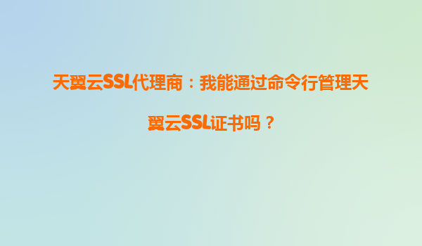 天翼云SSL代理商:我能通過命令行管理天翼云SSL證書嗎?