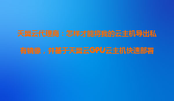天翼云代理商指南:如何通過私有鏡像與GPU云主機(jī)快速部署業(yè)務(wù)