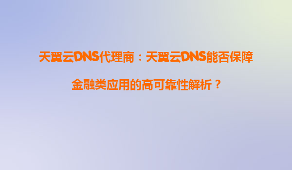 2025-09-16天翼云DNS代理商:天翼云DNS能否保障金融類(lèi)應(yīng)用的高可靠性解析? 一、金融類(lèi)應(yīng)用的DNS解析挑戰(zhàn) 金融行業(yè)對(duì)網(wǎng)絡(luò)服務(wù)的穩(wěn)定性、安全性和響應(yīng)速度有著極高的要求。任何DNS解析延遲、故障或攻擊都可能導(dǎo)致交易失敗、客...