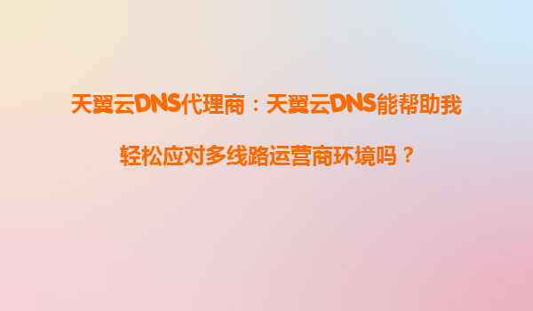 2025-09-16天翼云DNS代理商:天翼云DNS能幫助我輕松應(yīng)對多線路運(yùn)營商環(huán)境嗎? 一、引言 在當(dāng)今互聯(lián)網(wǎng)時代,企業(yè)網(wǎng)站和應(yīng)用需要面對來自不同運(yùn)營商、不同地域的用戶訪問需求。如何在多線路運(yùn)營商環(huán)境下保證穩(wěn)定、高效...