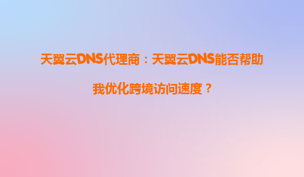 2025-09-16天翼云DNS代理商:天翼云DNS能否幫助優(yōu)化跨境訪問速度? 引言 在全球化業(yè)務(wù)快速發(fā)展的今天,跨境訪問的速度和穩(wěn)定性成為許多企業(yè)關(guān)注的焦點(diǎn)。無論是電商、游戲、還是企業(yè)內(nèi)部的跨國協(xié)作...