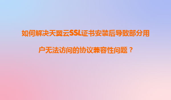 2025-11-05如何解決天翼云SSL證書安裝后導(dǎo)致部分用戶無法訪問的協(xié)議兼容性問題? 問題背景與現(xiàn)象分析 在天翼云環(huán)境中部署SSL證書后,部分用戶可能因瀏覽器版本、設(shè)備系統(tǒng)或網(wǎng)絡(luò)環(huán)...