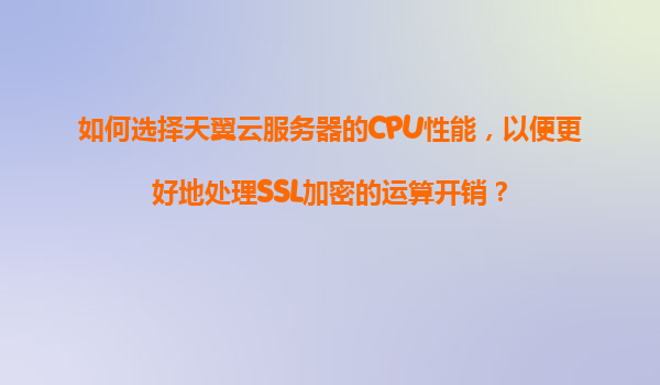 2025-11-04如何選擇天翼云服務(wù)器的CPU性能以優(yōu)化SSL加密運算開銷 一、SSL加密的運算需求與CPU的關(guān)系 SSL/TLS協(xié)議廣泛應(yīng)用于網(wǎng)站、API等場景的數(shù)據(jù)加密傳輸,但SSL握手過程中的非對稱加密(如RSA、E...