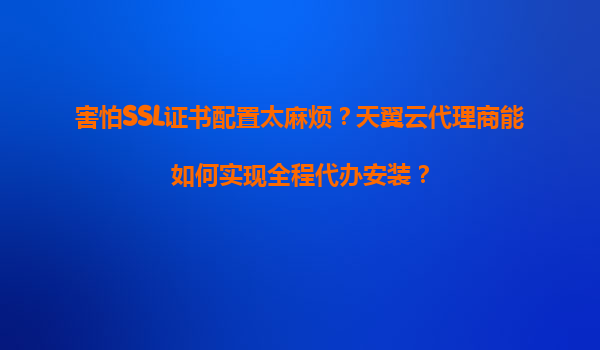 2025-11-03害怕SSL證書配置太麻煩?天翼云代理商如何實現(xiàn)全程代辦安裝 一、SSL證書配置的痛點 在數(shù)字化時代,網(wǎng)絡(luò)安全已成為企業(yè)不可忽視的關(guān)鍵環(huán)節(jié)。SSL證書作為網(wǎng)站安全的基石,能夠有...