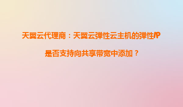 2025-10-30天翼云彈性云主機(jī)的彈性IP與共享帶寬功能解析 彈性IP與共享帶寬的協(xié)同優(yōu)勢(shì) 天翼云作為中國電信旗下的云計(jì)算服務(wù)商,其彈性云主機(jī)提供的彈性IP功能不僅支持獨(dú)立綁定,還可靈活加入共享帶寬池。這一設(shè)計(jì)充分體現(xiàn)...
