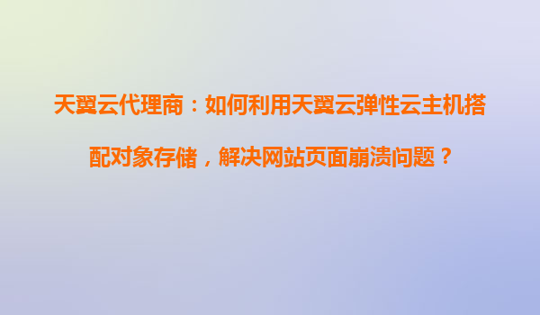 2025-10-29天翼云代理商:如何利用彈性云主機搭配對象存儲解決網(wǎng)站崩潰問題 一、問題背景:網(wǎng)站崩潰的常見原因 網(wǎng)站頁面崩潰通常由瞬間流量激增、服務(wù)器資源不足或存儲性...