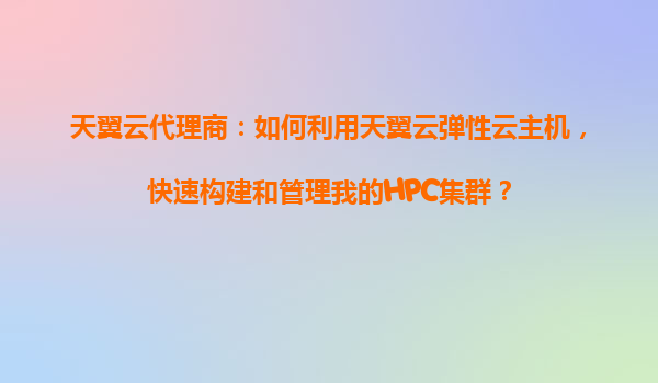 2025-10-29天翼云代理商:如何利用天翼云彈性云主機,快速構(gòu)建和管理HPC集群 引言:HPC集群的現(xiàn)代化需求 在當(dāng)前數(shù)字化轉(zhuǎn)型的浪潮中,高性能計算(HPC)集群成為科研、工程仿真和人工智能等領(lǐng)域的重要工具。然而,傳統(tǒng)...