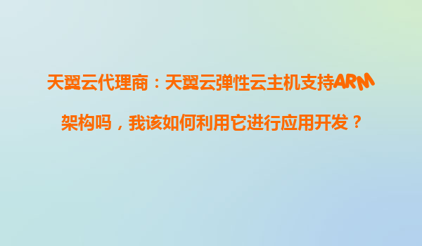 2025-10-28天翼云彈性云主機ARM架構解析:代理商的優(yōu)勢與應用開發(fā)指南 一、天翼云彈性云主機是否支持ARM架構? 天翼云作為中國電信旗下的云計算服務品牌,其彈性云主機(E...