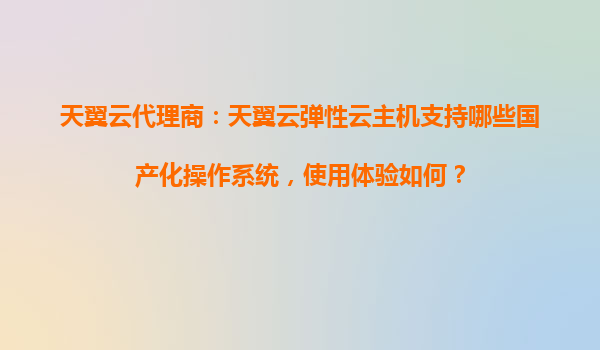 2025-10-28天翼云彈性云主機支持的國產化操作系統(tǒng)及使用體驗 一、天翼云彈性云主機簡介 天翼云作為中國電信旗下的云計算服務品牌,憑借其強大的基礎設施和技術實力,為企業(yè)用戶提供高性能、高可靠的...