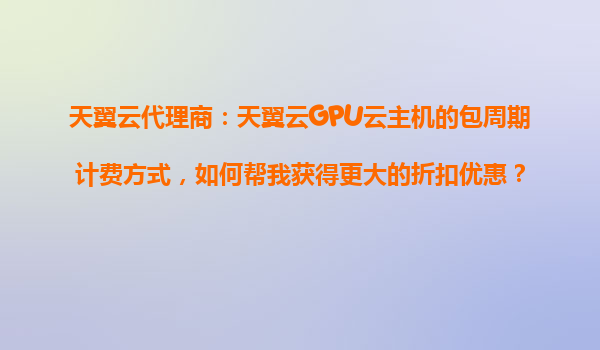 2025-10-26天翼云代理商:如何通過包周期計(jì)費(fèi)方式獲得天翼云GPU云主機(jī)更大折扣優(yōu)惠? 一、天翼云GPU云主機(jī)的核心價(jià)值 天翼云作為中國(guó)電信旗下云計(jì)算品牌,其GPU云主機(jī)憑借高性能計(jì)算能力、穩(wěn)定的網(wǎng)絡(luò)架...