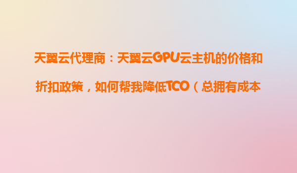 2025-10-25天翼云代理商:天翼云GPU云主機(jī)的價(jià)格和折扣政策如何降低TCO(總擁有成本) 一、天翼云GPU云主機(jī)的核心優(yōu)勢(shì) 天翼云作為中國(guó)電信旗下的云計(jì)算服務(wù)商,其GPU云主機(jī)在性能、安全性和本土化服務(wù)上具備顯著優(yōu)勢(shì)...