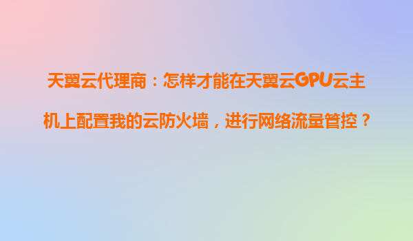 2025-10-25天翼云代理商:如何在天翼云GPU云主機(jī)上配置云防火墻實(shí)現(xiàn)流量管控 一、天翼云GPU云主機(jī)與云防火墻的核心優(yōu)勢(shì) 作為中國(guó)電信旗下云計(jì)算服務(wù)品牌,天翼云憑借運(yùn)營(yíng)商級(jí)網(wǎng)絡(luò)資源和技術(shù)積累,其GPU云主機(jī)具備以...