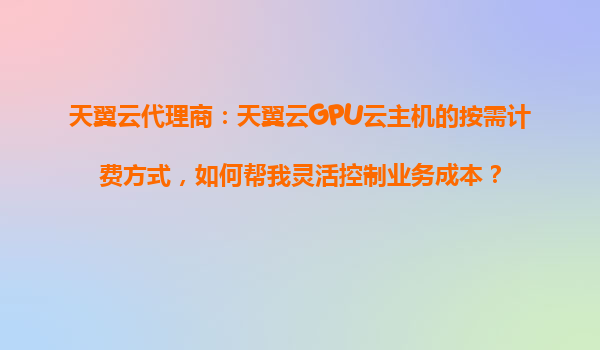 4008-020-360 天翼云代理商:天翼云GPU云主機的按需計費方式如何靈活控制業(yè)務(wù)成本? 一、天翼云GPU云主機的按需計費模式解析 天翼云GPU云主機提供的按需計費(后付費)方式,是一種基于實際使用量付費的彈...