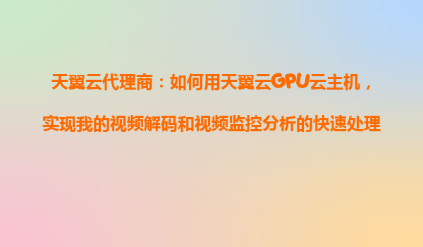 2025-10-22天翼云代理商:如何用天翼云GPU云主機(jī),實(shí)現(xiàn)視頻解碼與監(jiān)控分析的快速處理? 一、天翼云GPU云主機(jī)的核心優(yōu)勢(shì) 天翼云作為中國電信旗下云計(jì)算品牌,其GPU云主機(jī)憑借高性能計(jì)算能力、彈性擴(kuò)...