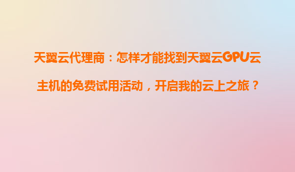 2025-10-22天翼云代理商指南:如何參與天翼云GPU云主機(jī)免費(fèi)試用活動(dòng),開啟您的云上之旅? 一、天翼云GPU云主機(jī)的核心優(yōu)勢(shì) 在數(shù)字化轉(zhuǎn)型浪潮中,天翼云憑借其強(qiáng)大的基礎(chǔ)設(shè)...