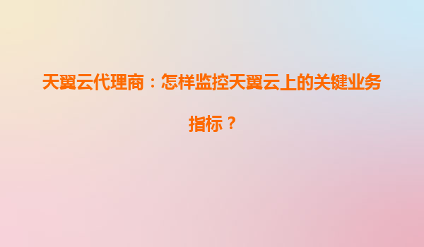 2025-04-18天翼云代理商:如何高效監(jiān)控天翼云上的關(guān)鍵業(yè)務(wù)指標(biāo)? 一、監(jiān)控關(guān)鍵業(yè)務(wù)指標(biāo)的必要性 作為天翼云代理商,監(jiān)控云上關(guān)鍵業(yè)務(wù)指標(biāo)是保障客戶(hù)業(yè)務(wù)連續(xù)性、優(yōu)化資源利用率和提升服務(wù)質(zhì)量的核心任務(wù)...