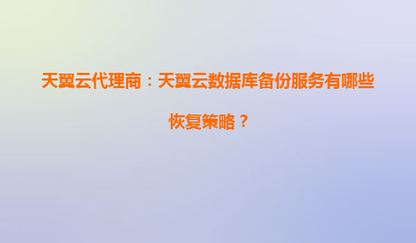 2025-04-08天翼云數(shù)據(jù)庫(kù)備份服務(wù)的恢復(fù)策略與代理商優(yōu)勢(shì)解析 一、天翼云數(shù)據(jù)庫(kù)備份服務(wù)概述 隨著企業(yè)數(shù)字化轉(zhuǎn)型的加速,數(shù)據(jù)已成為核心資產(chǎn)。天翼云數(shù)據(jù)庫(kù)備份服務(wù)(CTYunDatabaseBackupService)通過全生命周...