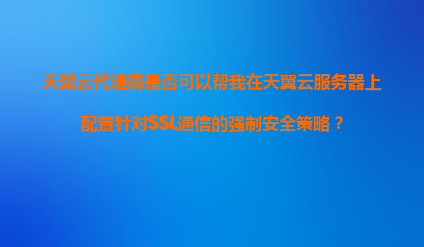 2025-11-07天翼云代理商是否可以幫助配置SSL通信的強(qiáng)制安全策略?——解析天翼云的安全優(yōu)勢 一、天翼云代理商的服務(wù)能力 天翼云作為中國電信旗下的云計(jì)算品牌,擁有完善的...