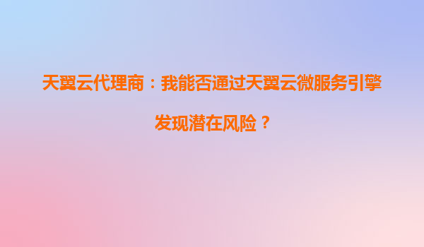 2025-09-29天翼云代理商視角:如何通過(guò)天翼云微服務(wù)引擎發(fā)現(xiàn)潛在風(fēng)險(xiǎn)一、引言:數(shù)字化轉(zhuǎn)型下的風(fēng)險(xiǎn)管理需求隨著企業(yè)數(shù)字化進(jìn)程加速,微服務(wù)架構(gòu)因高靈活性成為主流選擇,但多...