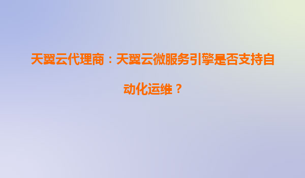 天翼云代理商:天翼云微服務引擎是否支持自動化運維? 一、天翼云微服務引擎的核心能力 天翼云微服務引擎(CT-MSE)作為中國電信旗下云計算品牌的核心產品,深度融合了電信級網絡基礎設施與云原生技術棧,為企...