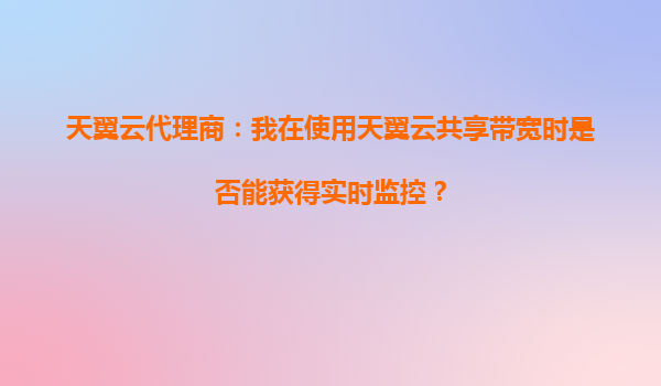 2025-09-20天翼云代理商:共享帶寬實時監控功能解析與天翼云優勢一覽 一、天翼云共享帶寬是否支持實時監控? 作為天翼云代理商,我們明確地告訴您:天翼云共享帶寬服務提...