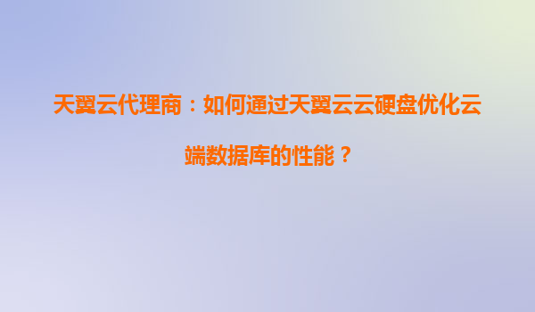 2025-09-17天翼云代理商:如何通過天翼云云硬盤優(yōu)化云端數(shù)據(jù)庫的性能 引言 在數(shù)字化時代,云端數(shù)據(jù)庫已成為企業(yè)數(shù)據(jù)存儲和處理的核心。然而,隨著數(shù)據(jù)量的不斷增加,數(shù)據(jù)庫性能的優(yōu)化變得尤為重要。天翼云作為...