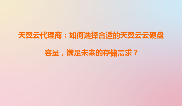 2025-09-17天翼云代理商:如何選擇合適的天翼云云硬盤容量,滿足未來的存儲需求? 一、云硬盤選型的重要性 在數(shù)字化轉(zhuǎn)型浪潮中,企業(yè)數(shù)據(jù)呈現(xiàn)爆發(fā)式增長,選擇合適的云硬盤容量直接影響業(yè)務連續(xù)性...